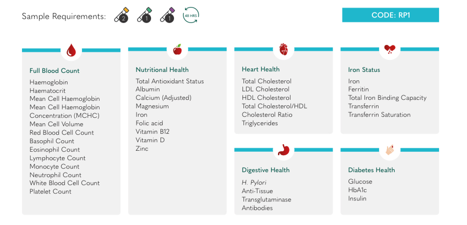 This comprehensive panel provides a detailed look at your internal health, focusing on how well your body absorbs and utilises nutrients, how your digestive system is functioning, and whether you may be at risk for underlying issues such as nutritional deficiencies, inflammation, or blood sugar imbalance. It offers valuable insight into key areas that influence your energy, mood, metabolism, and gut health.